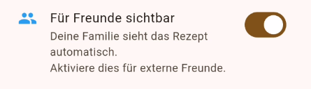 • Explizite Freigabe: Nur Rezepte, die du beim Erstellen oder Bearbeiten bewusst für Freunde freigibst, tauchen bei anderen auf. Deine privaten Notizen oder Küchen-Experimente bleiben also dein Geheimnis.